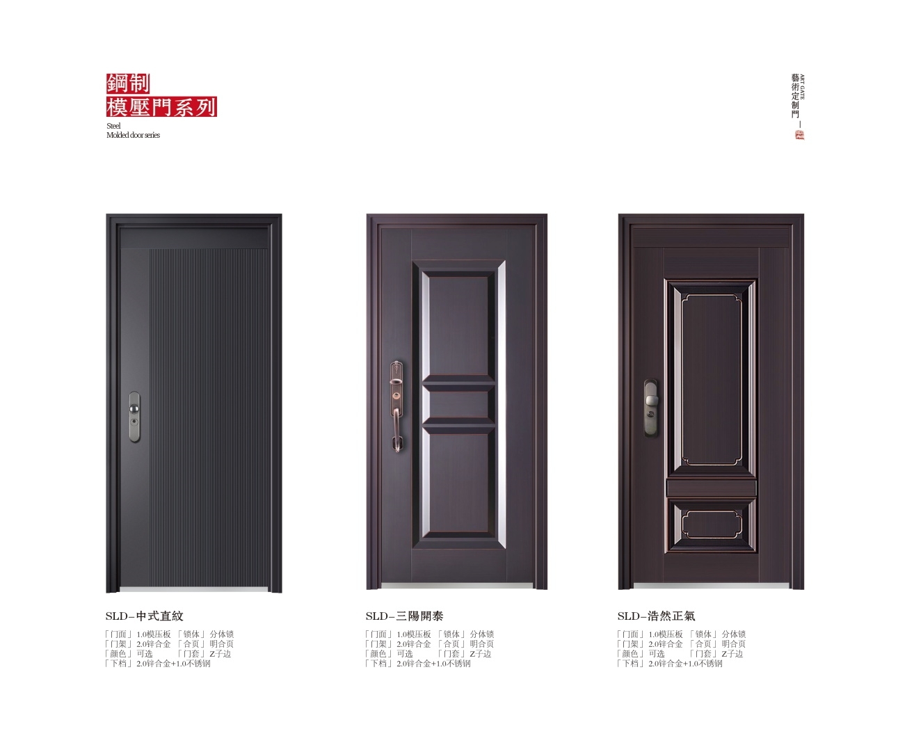 产品型号:SLD-中式直紋、SLD-三陽開泰、SLD-浩然正氣-高端艺墅入户门